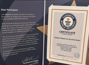 بعد مراجعة دقيقة لكافة الشروط والمعايير ليعلن هذا الإنجاز عالميًا ويوثق في السجلات الدولية كدليل على احترافية الأداء وتفوّق العنصر الوطني في مجال حراسات الأمن وخدمات الحراسة الأمنية المتكاملة.